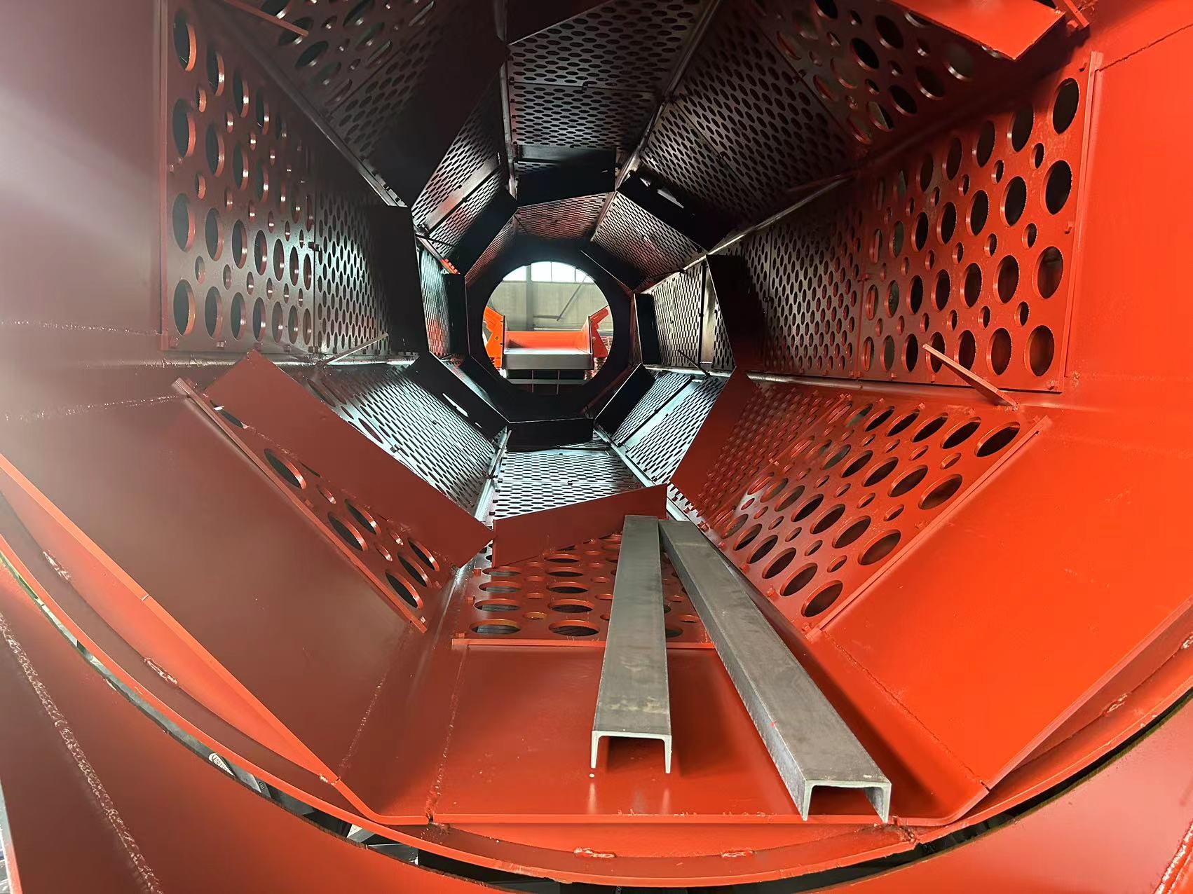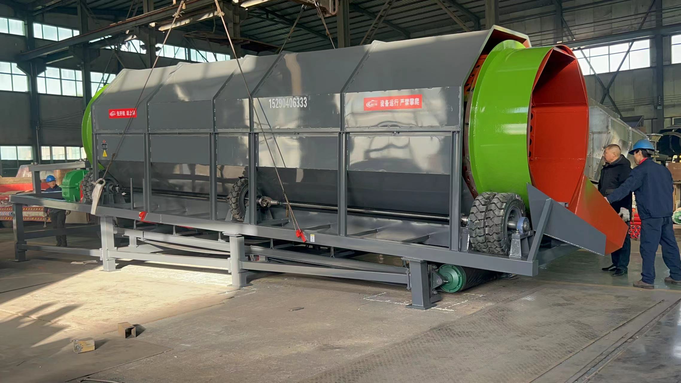 無軸滾筒篩是由若干個圓形狀篩網組成,整體與地平面成傾斜狀態,外部被密封隔離罩所密封,以防止污染環境。通過變速減速系統使篩分筒在一定轉速下旋轉,物料自上而下通過篩分筒得到分離,細料從篩分筒前端下部排出,粗料從篩分筒下端尾部排出。滾筒篩(圓筒回轉篩)可設有梳形清篩機構,在篩分過程中可通過梳形清篩機構與篩分筒的相對運動,達到對篩體不問斷清理的效果,使篩分筒在整個工作過程中始終保持清結、不粘、不堵、不影響篩分效果。