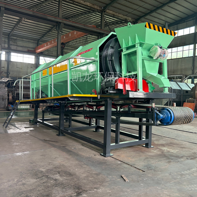 滾筒篩是通過長鼓的孔尺寸來分類廢物。不同尺寸的孔分選不同類型的材料(對沙子,碎玻璃,陶瓷和石材等惰性小于80mm,可回收塑料為80mm至200mm,紙和大塑料為200mm至300mm)。各個零件分別具有比篩網孔的直徑小的尺寸的零件落到機器的底部,尺寸大于篩網直徑的零件在機器的上方向前移動,運動時,沿出入方向落入排料斗,排向周圍環境較好。